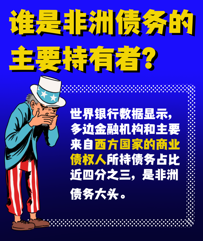 世界銀行去年數據顯示,在49個(gè)有數據可查的非洲國家共計6960億美元外債中,多邊金融機構和商業(yè)債權人所持債務(wù)占比近四分之三,是非洲債務(wù)大頭。