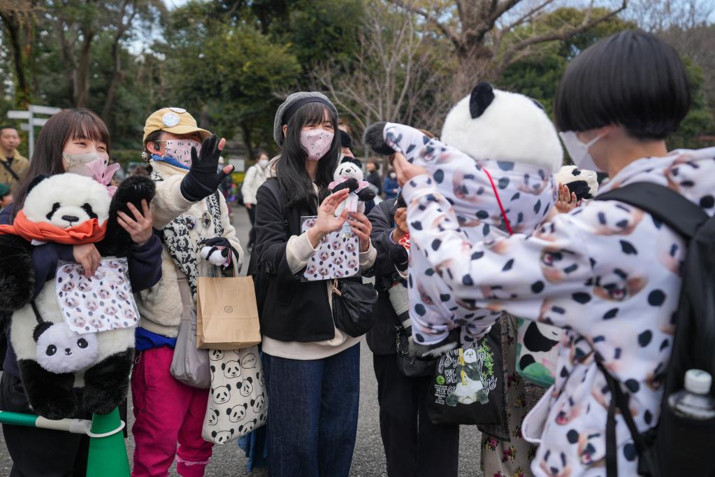 2月19日,在日本東京上野動(dòng)物園,游客排隊與大熊貓“香香”告別。新華社記者 張笑宇 攝
