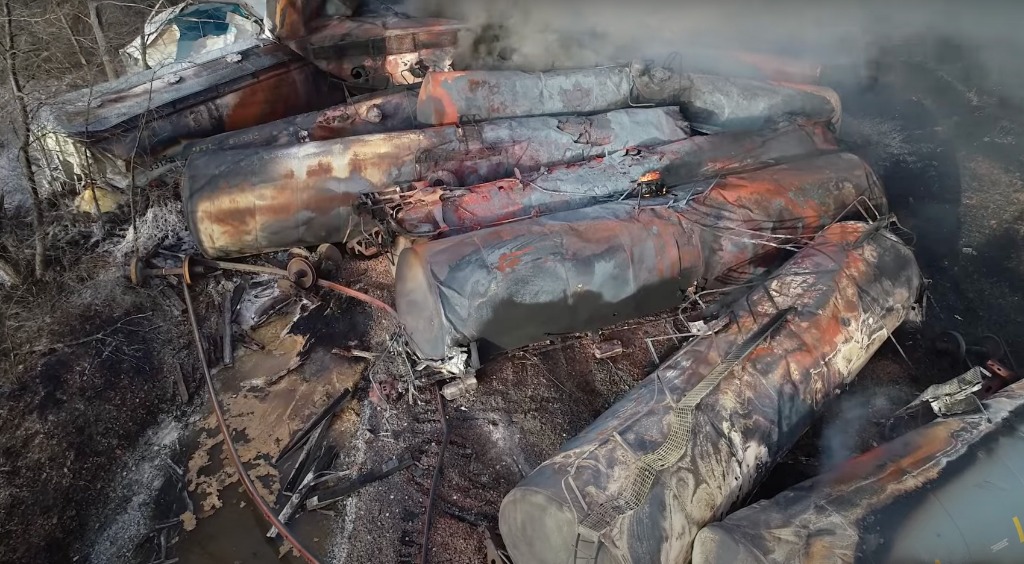 本月3日,諾??四戏焦疽涣胸涍\列車(chē)駛經(jīng)東巴勒斯坦鎮時(shí)發(fā)生事故,共50節車(chē)廂脫軌或損壞;20節運載危險品的車(chē)廂中有11節脫軌,其中5節載有氯乙烯。應急人員6日以避免大規模爆炸為由,對脫軌氯乙烯罐車(chē)進(jìn)行“受控釋放”,燃燒產(chǎn)生的滾滾黑煙在東巴勒斯坦鎮上空彌漫。