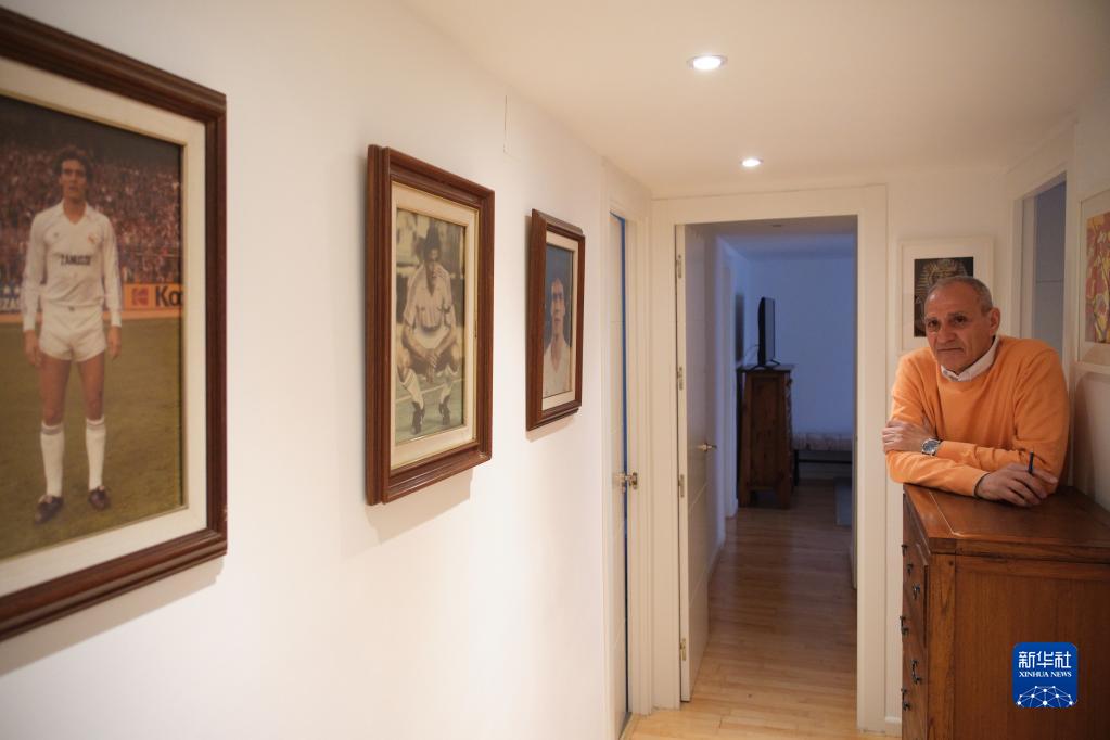 這是4月17日在西班牙馬德里拍攝的阿方索和他球員時(shí)期的照片。新華社記者 孟鼎博 攝