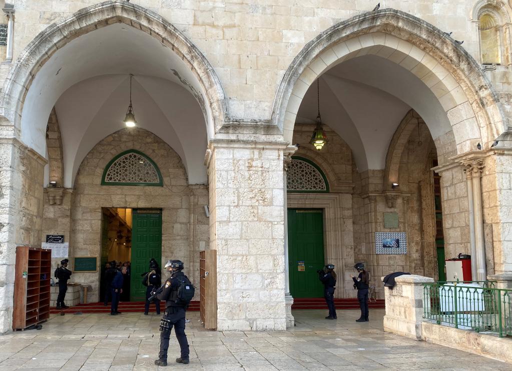 4月5日,以色列警察在耶路撒冷老城阿克薩清真寺執勤。新華社發(fā)(穆阿邁爾·阿瓦德攝)