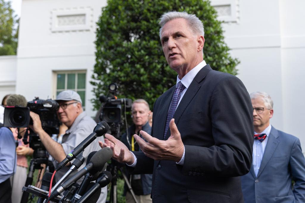 5月22日,在美國華盛頓白宮,國會(huì )眾議長(cháng)、共和黨人凱文·麥卡錫就債務(wù)上限問(wèn)題與美國總統拜登談判后回答記者提問(wèn)。(新華社發(fā),亞倫攝)