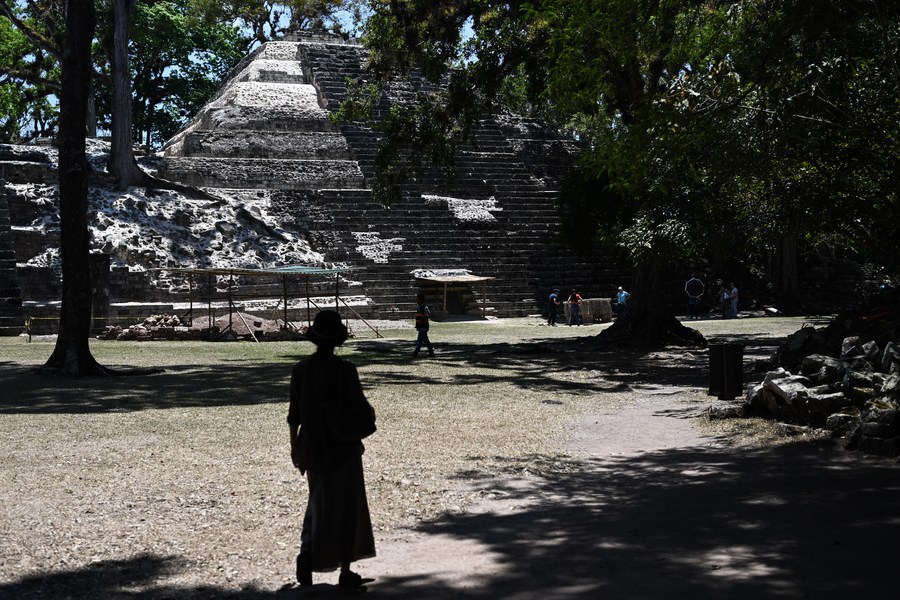 4月1日,游客在洪都拉斯科潘瑪雅古城遺址內參觀(guān)。中洪在當地展開(kāi)考古合作。新華社記者辛悅衛攝