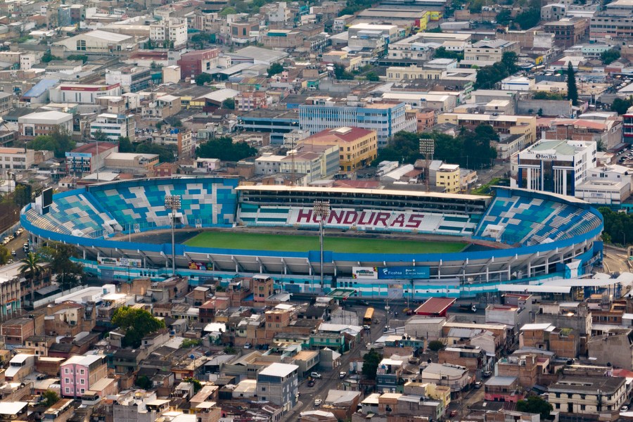 這是3月26日在洪都拉斯首都特古西加爾巴拍攝的國家體育場(chǎng)(無(wú)人機照片)。新華社記者辛悅衛攝