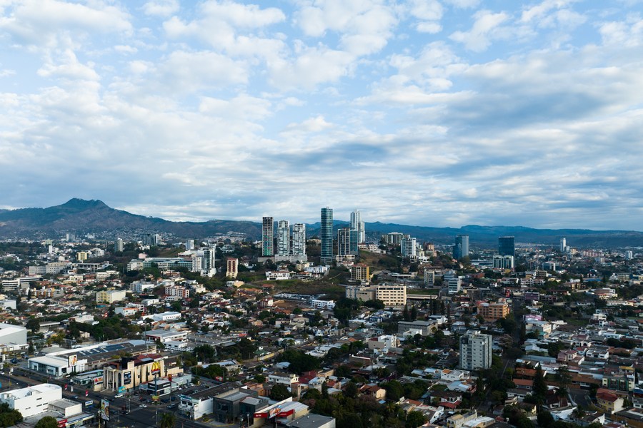 這是3月26日拍攝的洪都拉斯首都特古西加爾巴城市風(fēng)貌(無(wú)人機照片)。新華社記者辛悅衛攝