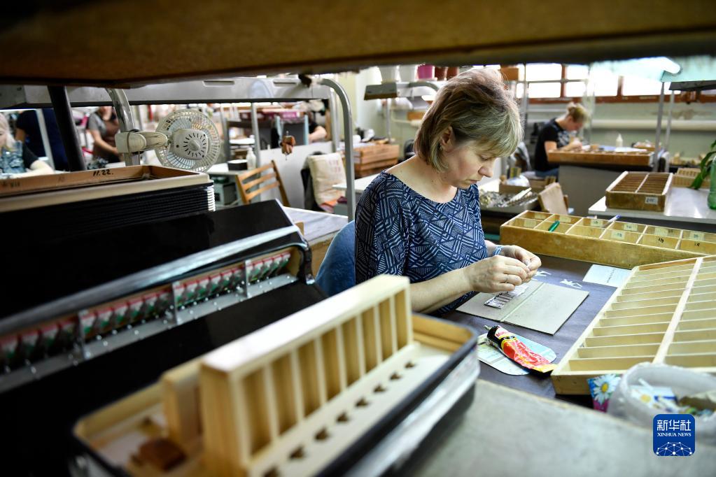 6月7日,工作人員在俄羅斯圖拉組裝巴揚手風(fēng)琴部件。