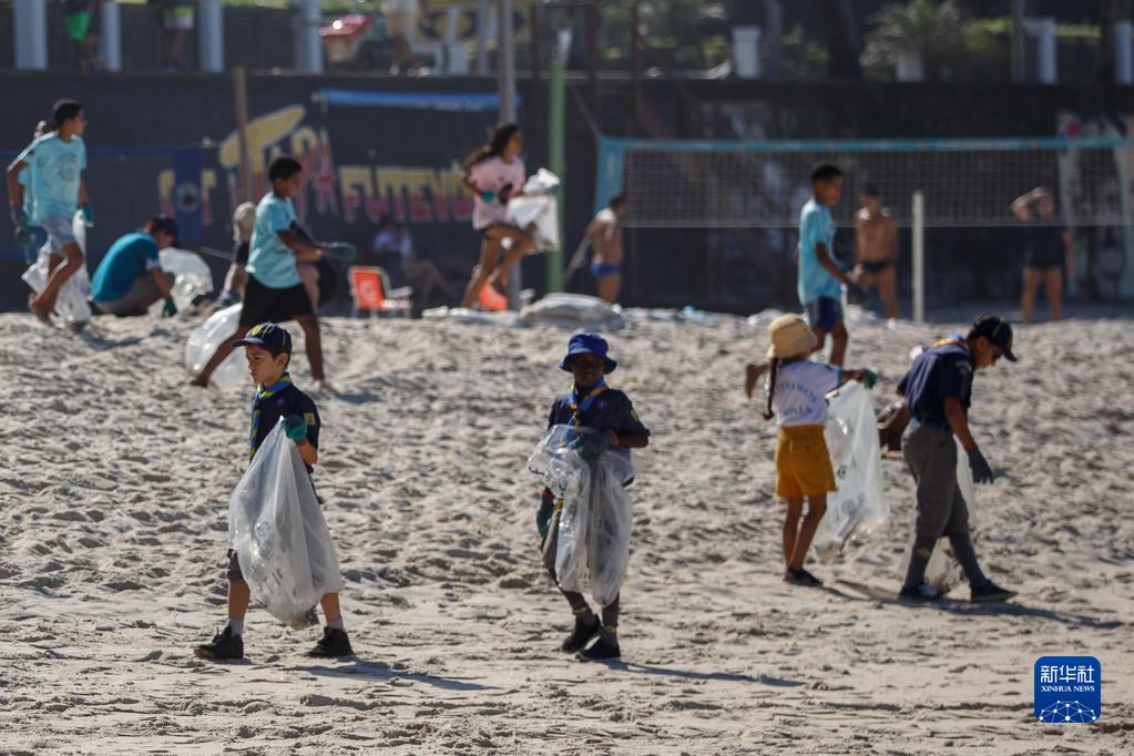 6月8日是世界海洋日。當日,志愿者們聚集在巴西里約熱內盧圣孔拉杜海灘,參與海灘垃圾清理行動(dòng)和保護海洋宣傳活動(dòng)。