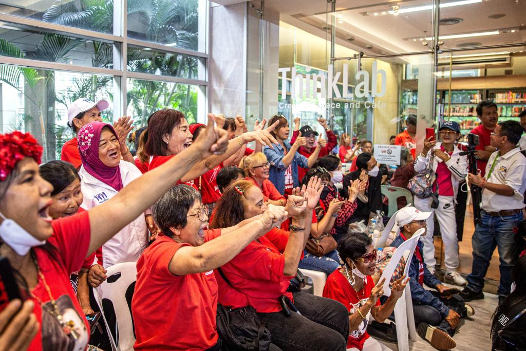 8月22日,民眾在泰國曼谷慶祝賽塔·他威信當選新一任泰國總理。新華社記者王騰攝