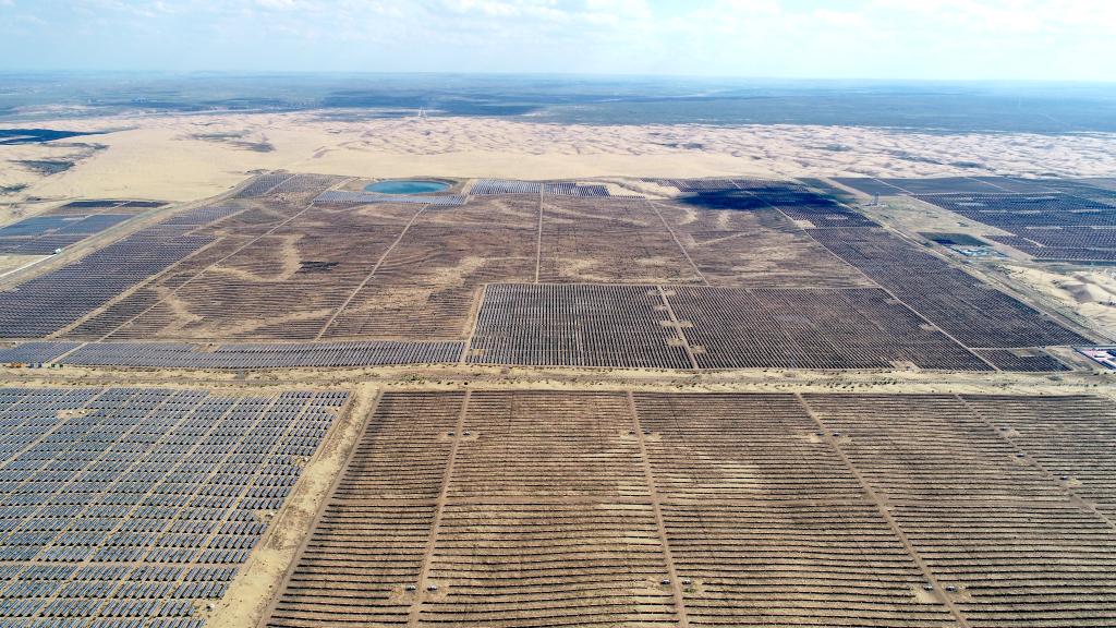 這是8月24日拍攝的鄂爾多斯市達拉特光伏基地(無(wú)人機照片)。新華社記者 賀書(shū)琛 攝