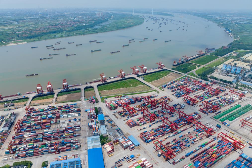 武漢陽(yáng)邏港一期碼頭(7月5日攝,無(wú)人機照片)。(新華社記者伍志尊攝)