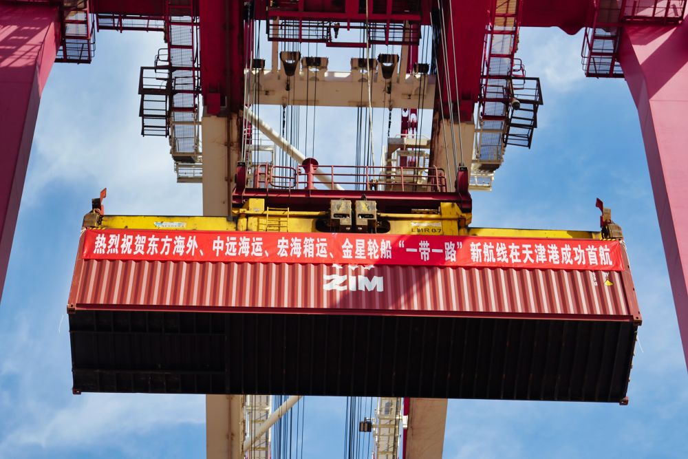 ↑天津港開(kāi)通“一帶一路”新航線(xiàn)