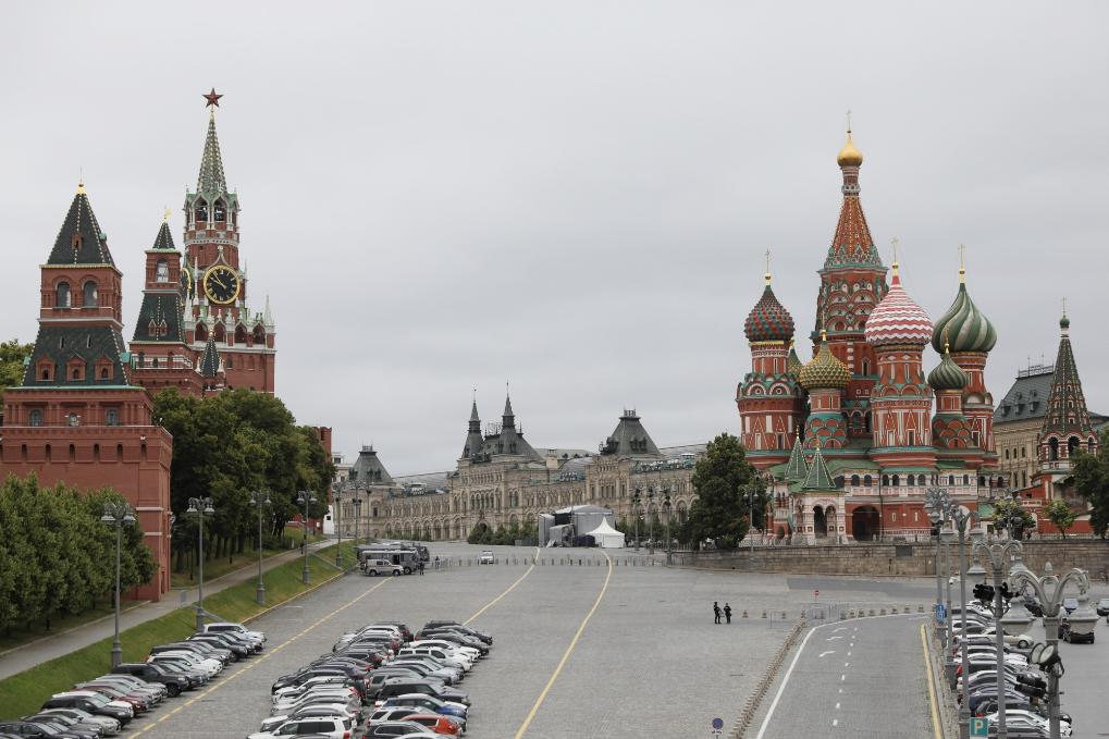 6月24日,執勤人員在俄羅斯莫斯科紅場(chǎng)附近警戒。新華社記者白雪騏攝