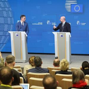 12月15日,在比利時(shí)布魯塞爾,歐洲理事會(huì )主席米歇爾在歐盟峰會(huì )期間主持召開(kāi)新聞發(fā)布會(huì )。新華社記者 趙丁喆 攝