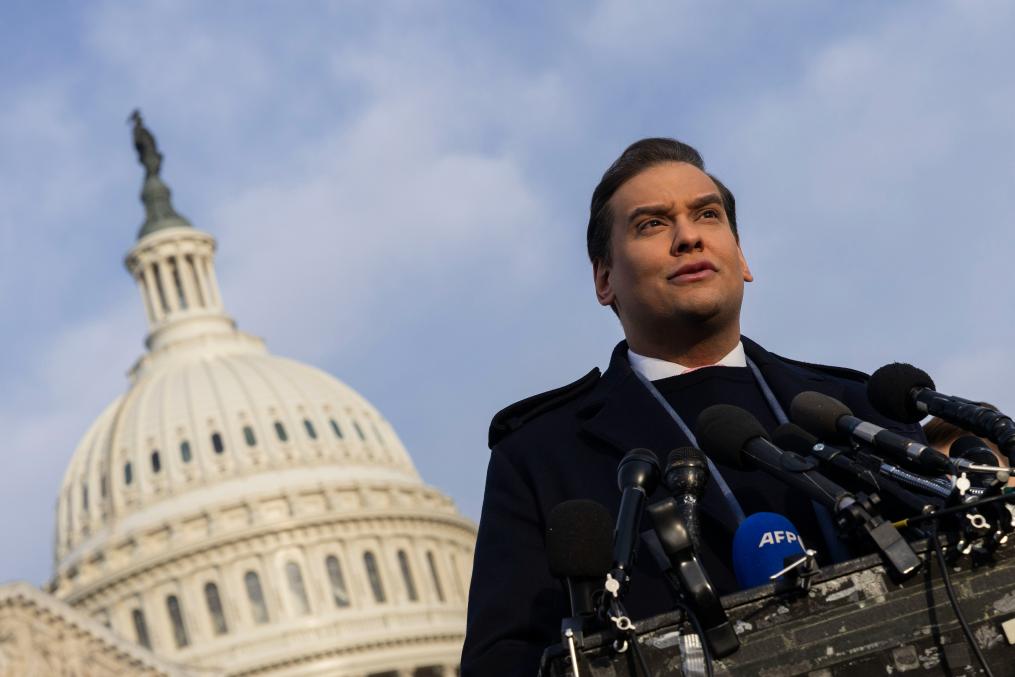 11月30日,喬治·桑托斯在美國華盛頓國會(huì )外舉行的新聞發(fā)布會(huì )上對媒體講話(huà)。新華社發(fā)(亞倫攝)