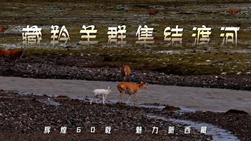 藏羚羊群集結渡河 白色小藏羚成最靚 “顯眼包”